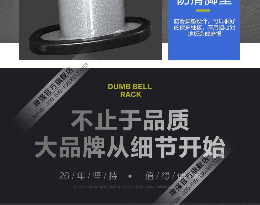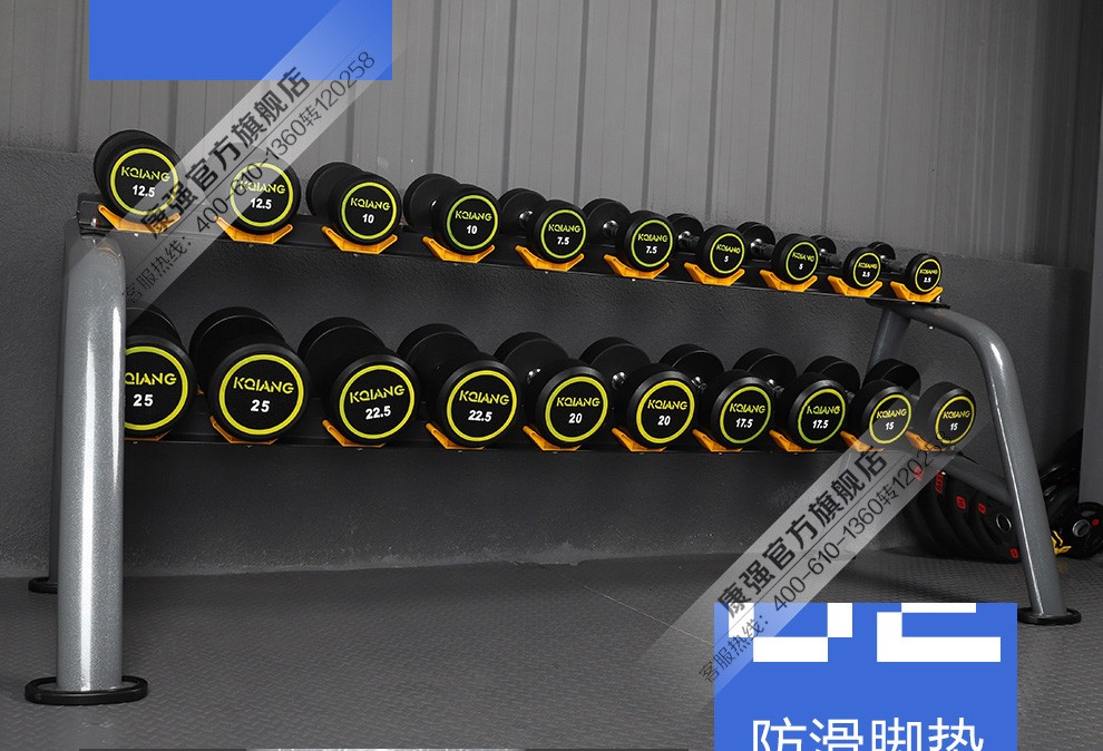 澳门新葡萄8883商用包胶哑铃固定哑铃健身房专用 6付哑铃组(含哑铃、哑铃架)